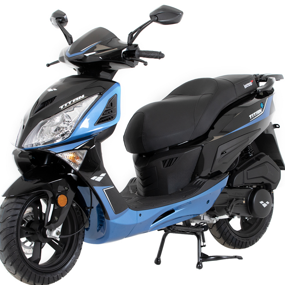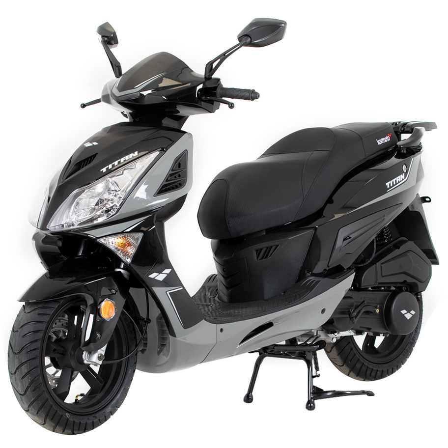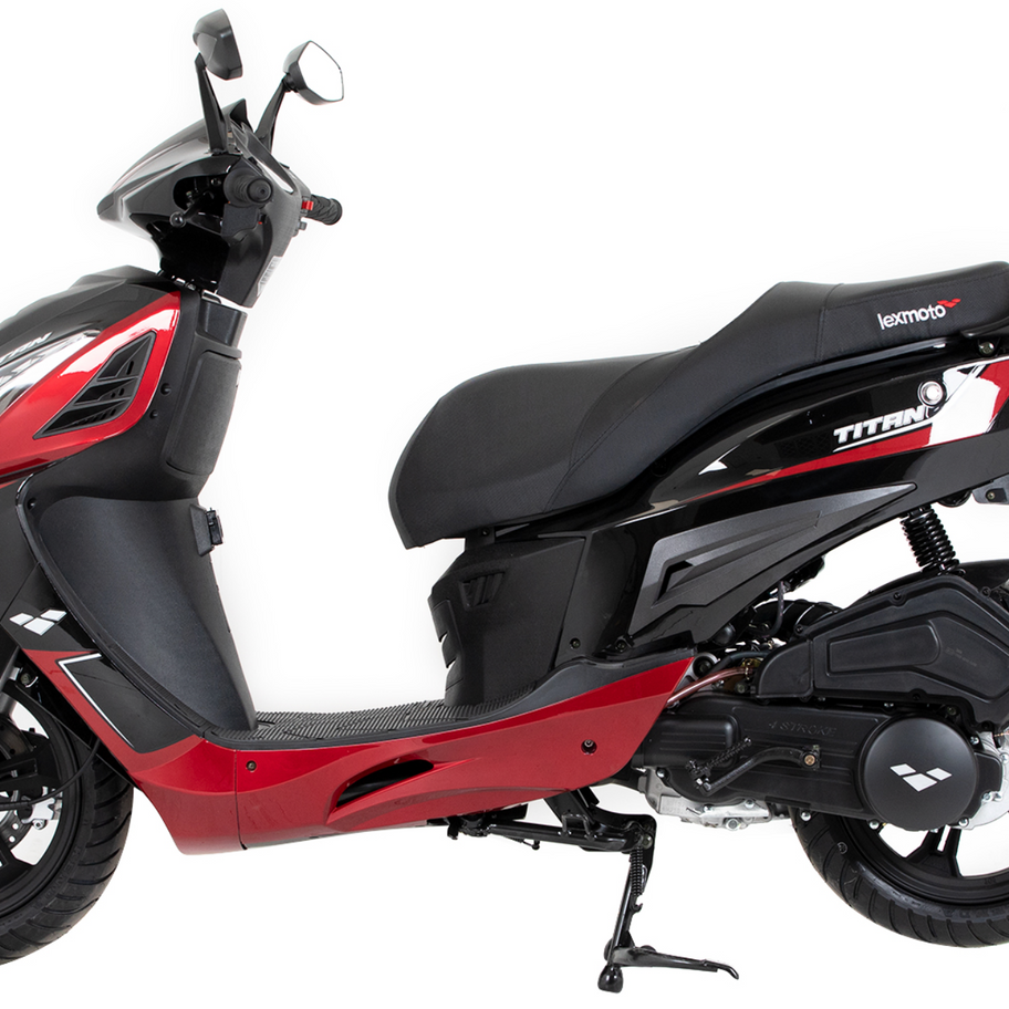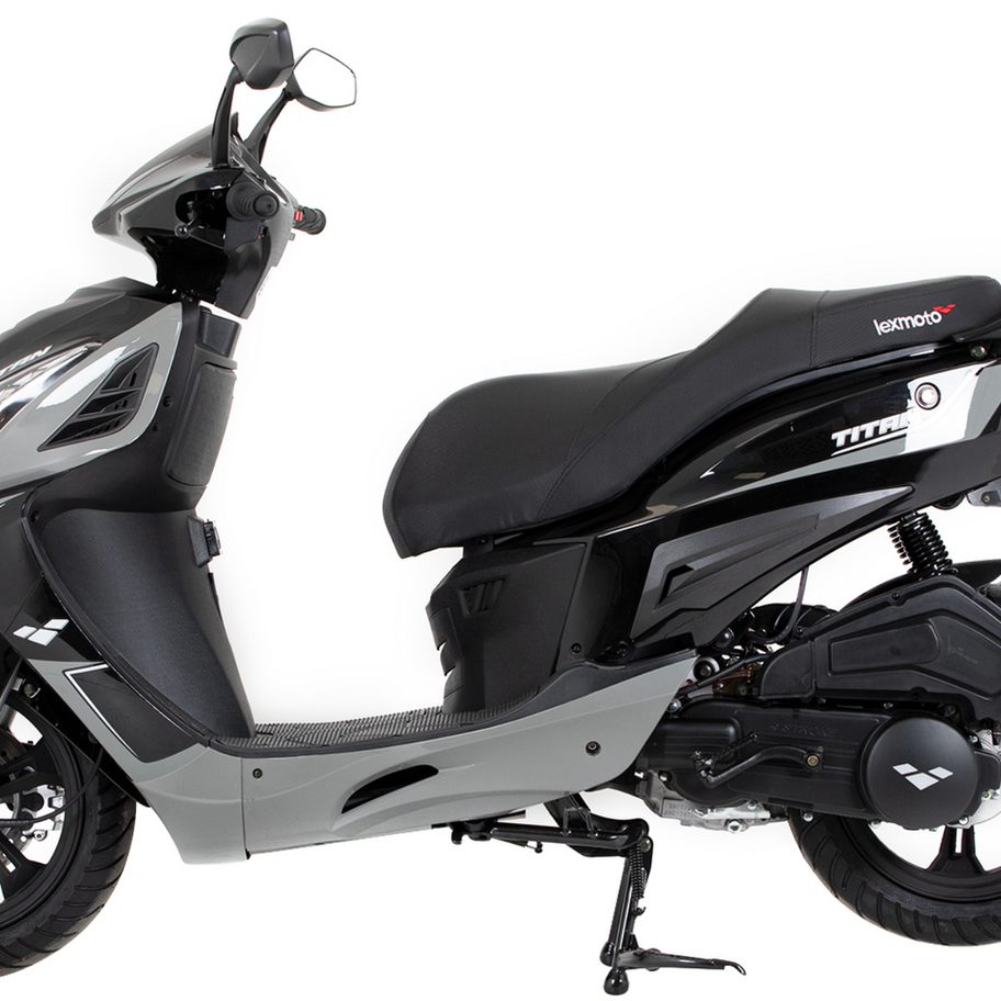 In need of a reliable, hard-working, practical and easy to ride commuter scooter? Then the Lexmoto Titan will be just what you`re after. This affordable twist n` go scooter gets you from A to B with ease and comfort thanks to a large comfortable seat, with ample under-seat storage, easy-to-use controls and a lightweight 118kg for easy manoeuvrability. It`s large road presence and simple practicality, the Titan offers any rider a great value package.